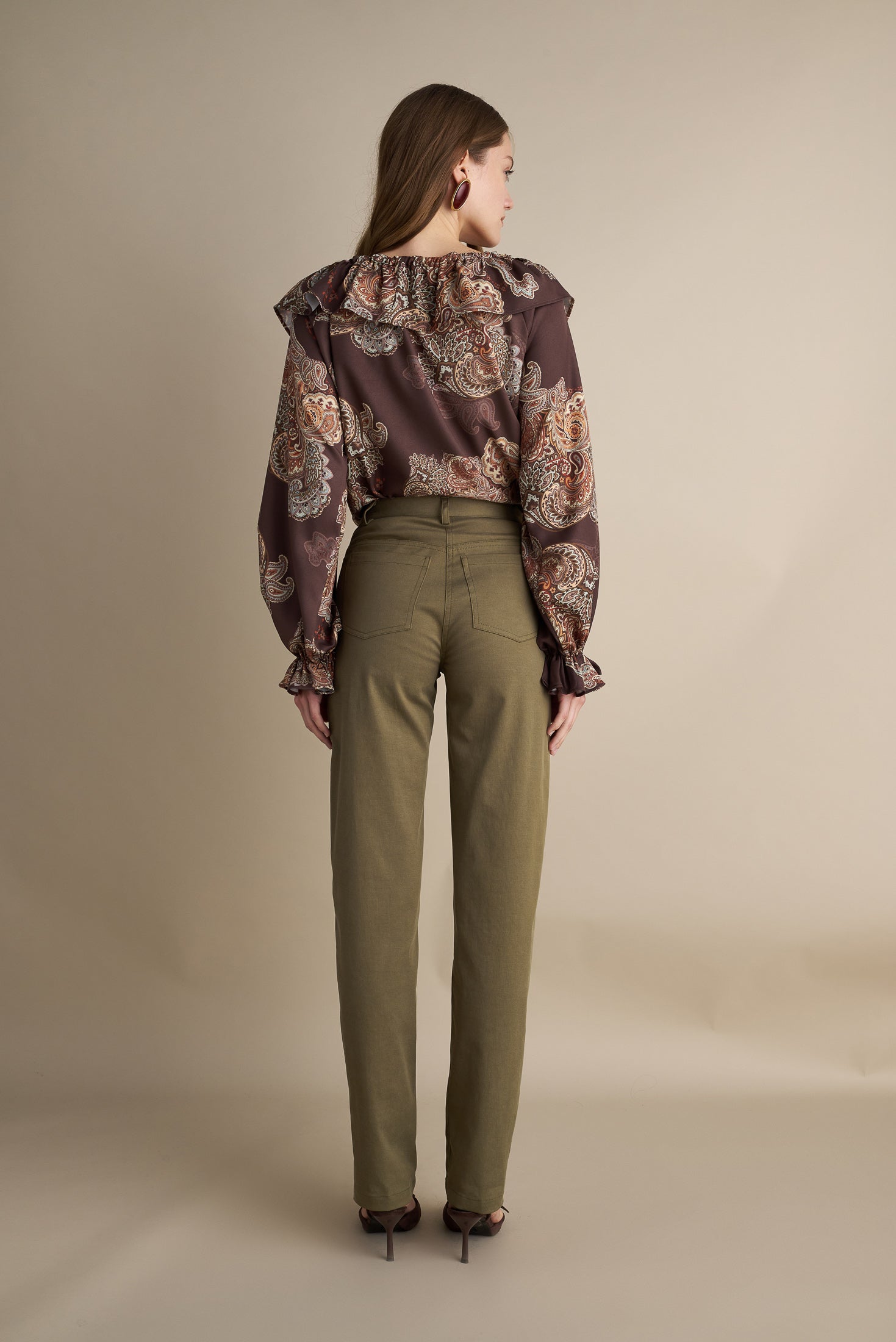 Barrel pants with a tapered fit and high waist. The stretch fabric offers flexibility, and the classic 5 pockets provide functionality. With belt loops and a button and zip fastening.