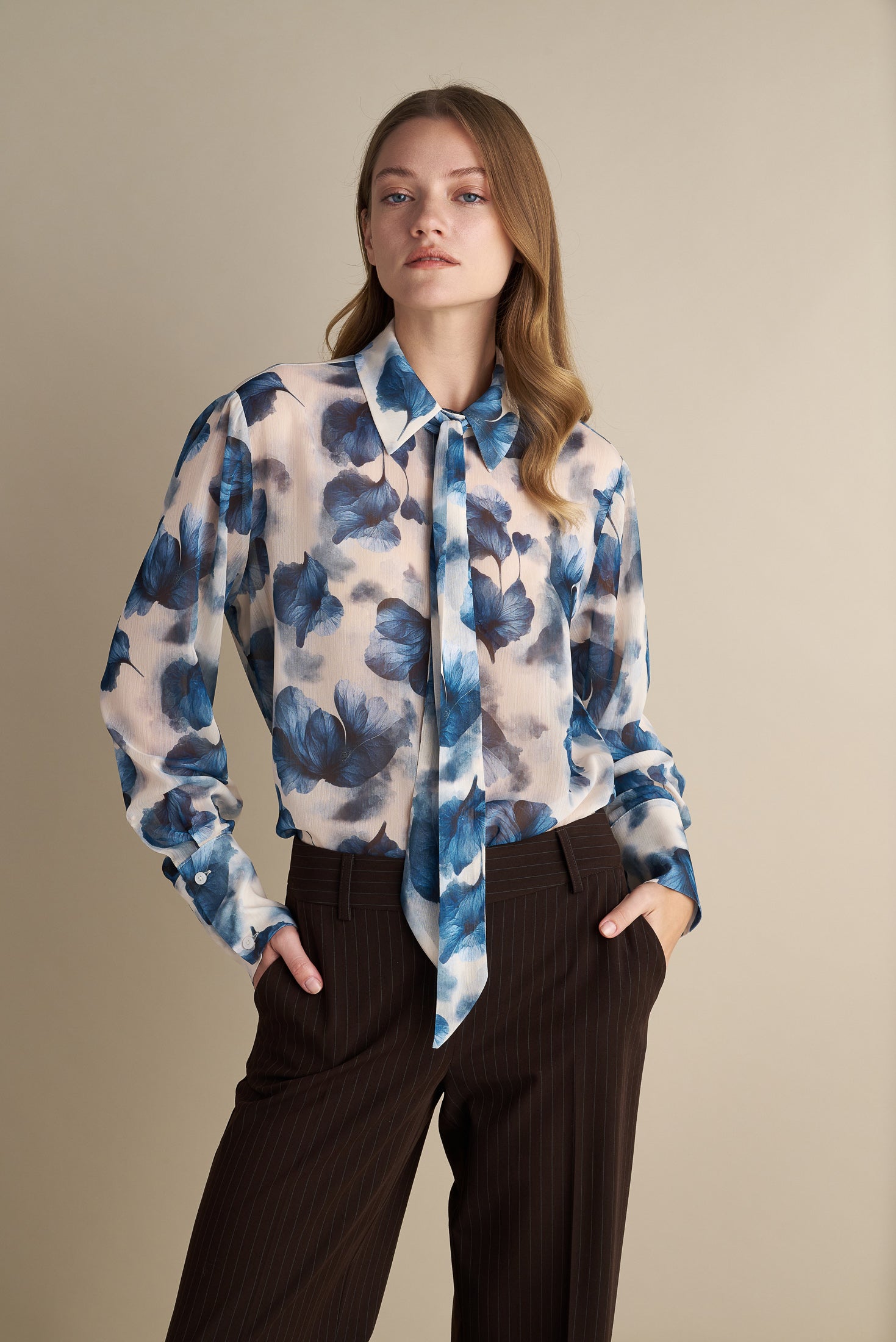 Low rise flare, pinstriped trousers with side pockets, zip fly, button fastener, beltloops, and welt pockets in the back.